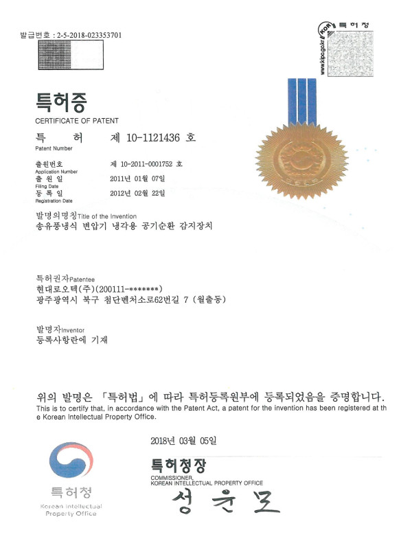 특허 송유풍냉식 변압기 냉각용 공기순환 감지장치 특허
