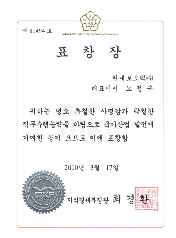 지식경제부장관_표창장